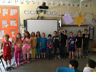 Students looked wonderful in their red, white and blue today. Last week we earned another classroom reward. Today we celebrated it with bomb pop popsicles -- worked out great for USA day.